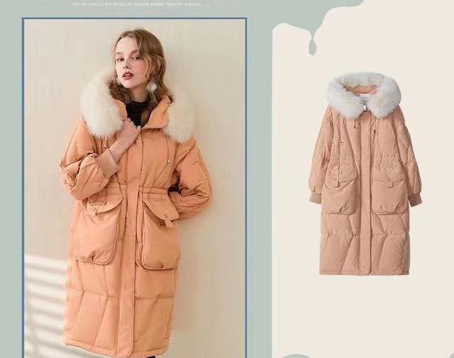 说到粉色,其实不得不提的一个颜色就是粉橘色,这个颜色是非常独特的,介于粉色和橘色之间,比较的耐看,也非常衬肤色。比较有厚度的羽绒服,有收腰的设计,以及连帽的设计,帽子有一圈白色的绒毛,更温暖,也比较有档次,这种的中长款基本上搭配一个黑色的袜裤,好看又保暖。