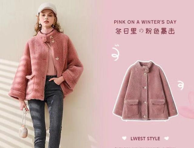 冬天里面粉色其实是能够给人很强的视觉效果的,首先粉色让人感觉少女心十足,而且会有很温暖的感觉,那么选择粉色的羊羔毛外套,自然是更加温暖了,这款粉色的羊羔毛外套是短款的,设计非常的俏皮可爱,但是因为版型比较大,所以为了避免臃肿,选择了一条修身的牛仔裤进行搭配,会比较显瘦一些。