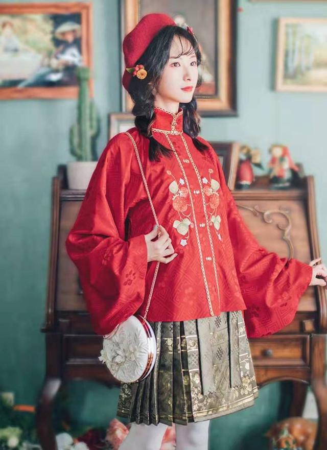 下身搭配的并不是传统的汉服长裙,而是一件更加方便的汉元素马面短裙,沿袭了马面的端庄,但是更加方便。这一套衣服会非常适合过年的时候来穿搭,而且上衣的版型非常宽松,就算是在里面穿很多衣服都不会觉得臃肿,怕冷星人有福气了。上一篇:冬季职场如何穿搭合适?下一篇:冬天小个子怎么搭配衣服?冬天怎样穿显瘦又保暖?